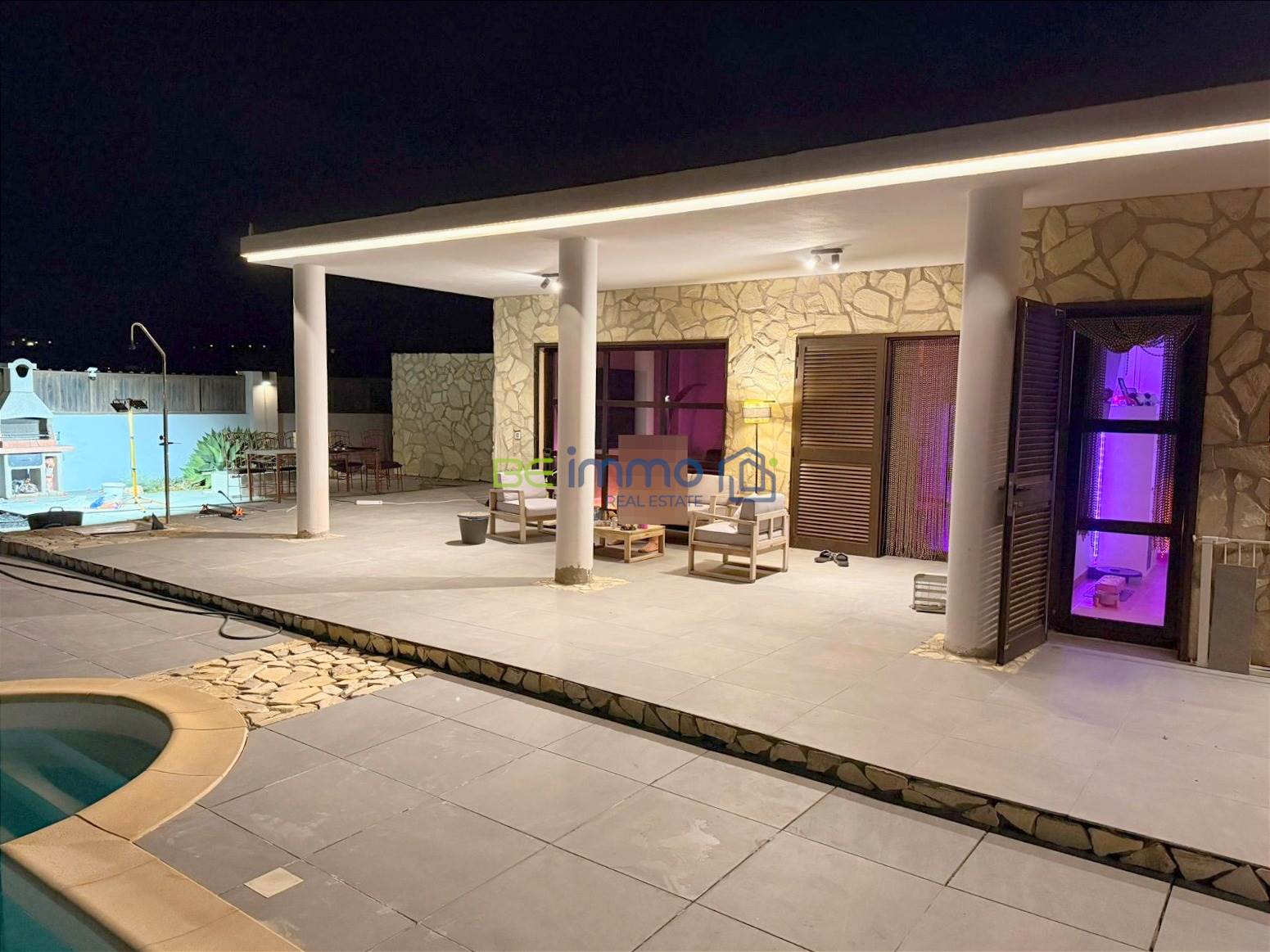 Built in 2005 and recently renovated, the villa boasts updated systems, new furniture and kitchen (2025), air conditioning in every room, smart home systems, Philips Hue lighting, Samsung appliances, and a fully renewed electrical system. The property is secured with fencing, an intrusion alarm system, two automatic gates plus a manual gate, and internet connection via Wi-Fi, LAN, and satellite always available.