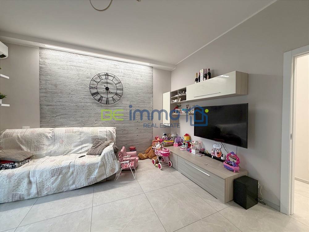 L’appartamento gode di tripla esposizione est, sud e ovest e si presenta con colori chiari e uno stile moderno, risultato della ristrutturazione completa effettuata nel 2018.