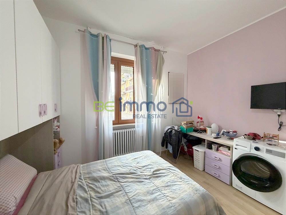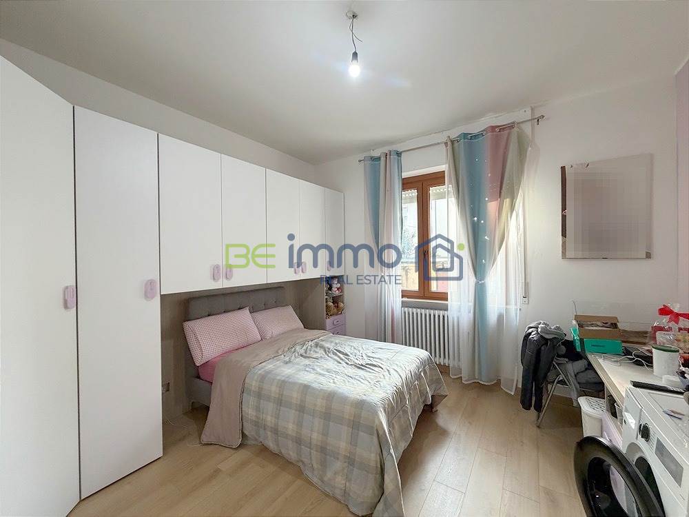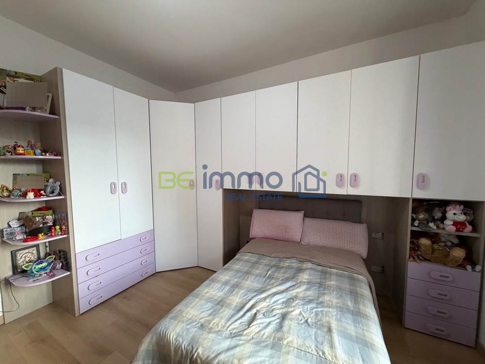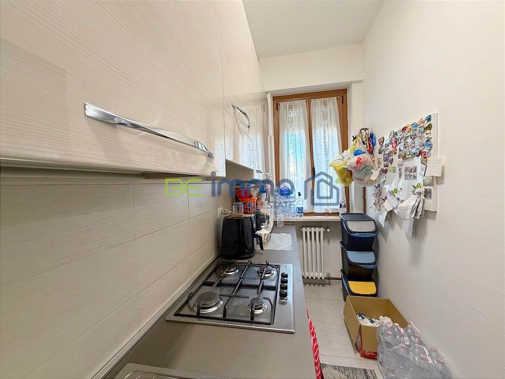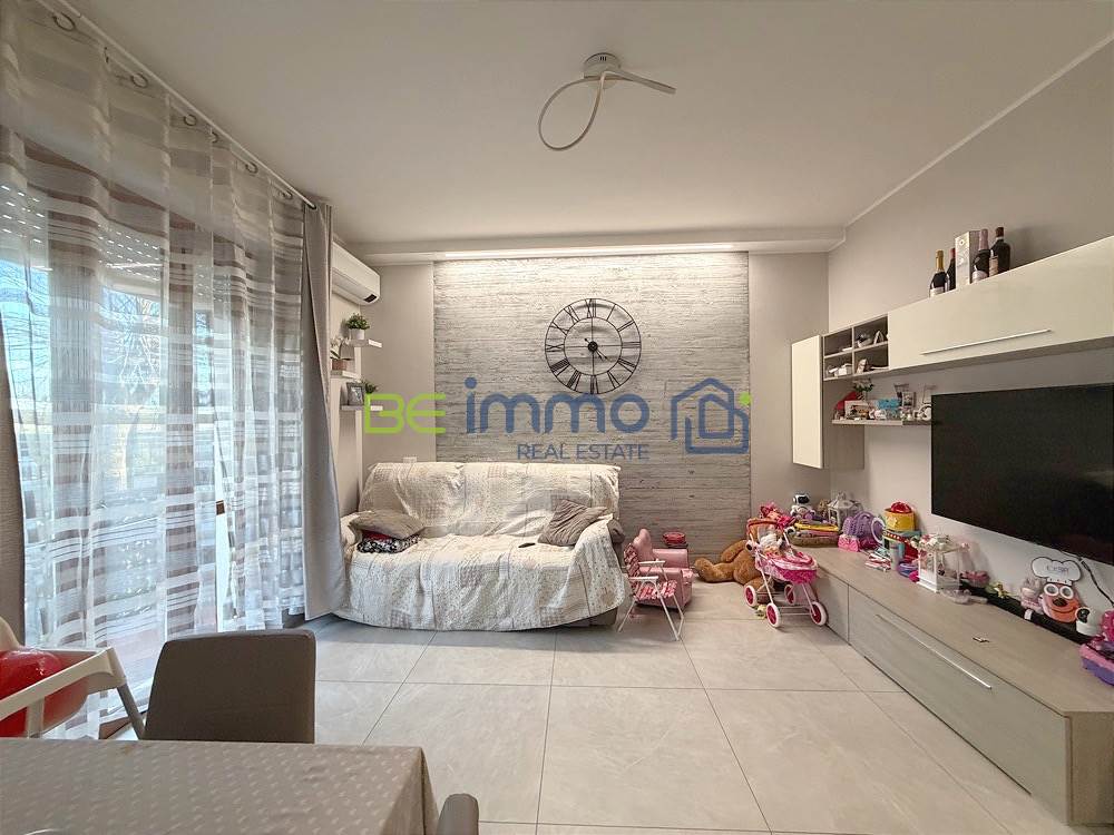 L’ingresso si apre su un corridoio ben organizzato dove troviamo subito un comodo armadio a muro, ideale come spazio contenitivo. Proseguendo si accede alla zona giorno composta da soggiorno con sala da pranzo e cucina separata, dotata di finestra e collegata alla zona living tramite una porta scorrevole in vetro, soluzione pratica che permette di mantenere gli ambienti distinti ma allo stesso tempo comunicanti. Dal soggiorno una portafinestra conduce al balcone esposto a est, che prosegue anche lungo la camera adiacente.