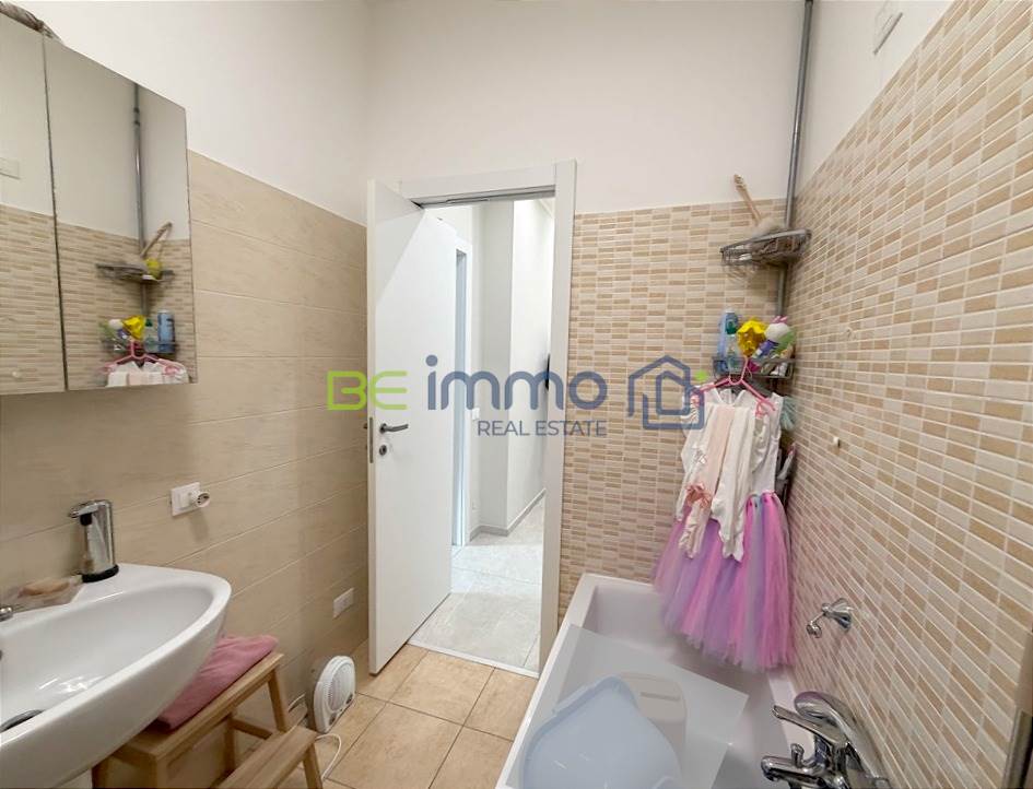 La zona notte è composta da due camere matrimoniali, entrambe ben distribuite. Una delle due affaccia sul balcone condiviso con il soggiorno. Il bagno finestrato, situato in fondo al corridoio, è dotato di vasca.